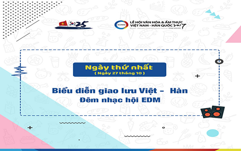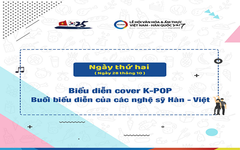 Hãng thông tấn Yonhap News ngày 7/10 đưa tin, Đại sứ quán Hàn Quốc tại Việt Nam và Hội người Hàn Quốc tại Hà Nội sẽ phối hợp tổ chức “Lễ hội Văn hóa ẩm thực Hàn Quốc 2017” tại thủ đô Hà Nội, nhằm kỷ niệm 25 năm quan hệ ngoại giao hai nước Hàn Quốc – Việt Nam. Sự kiện sẽ được diễn ra trong vòng ba ngày, bắt đầu từ ngày 27/10 tới tại quảng trường phía trước Sân vận động Mỹ Đình, thủ đô Hà Nội.