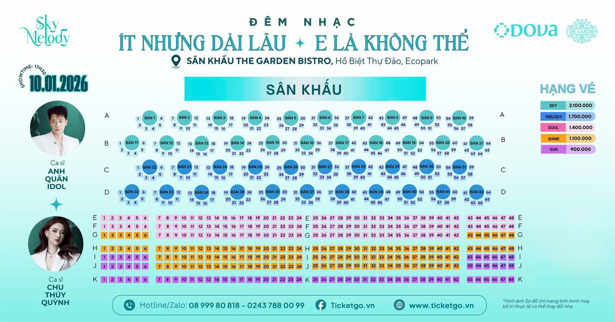 Vé live show Anh Quân Idol – Chu Thúy Quỳnh ngày 10.01.2026 đang mở bán trên Ticketgo.vn. Đặt vé ngay để có chỗ ngồi đẹp nhất.