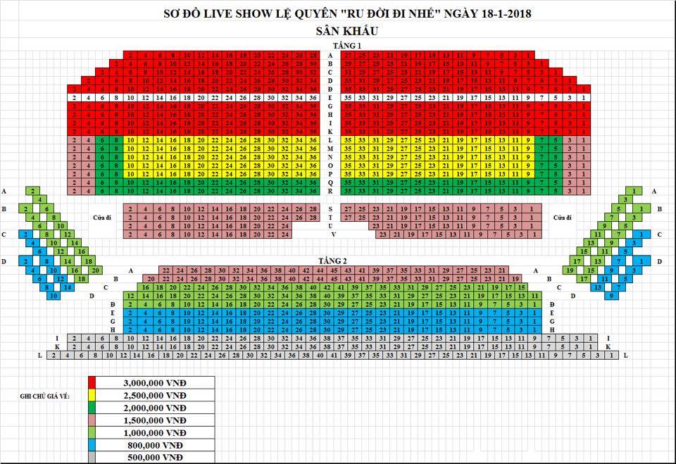 Giá vé: 500.000 VNĐ - 800.000 VNĐ - 1.000.000 VNĐ - 1.500.000 VNĐ - 2.000.000 VNĐ - 2.500.000 VNĐ - 3.000.000 VNĐ