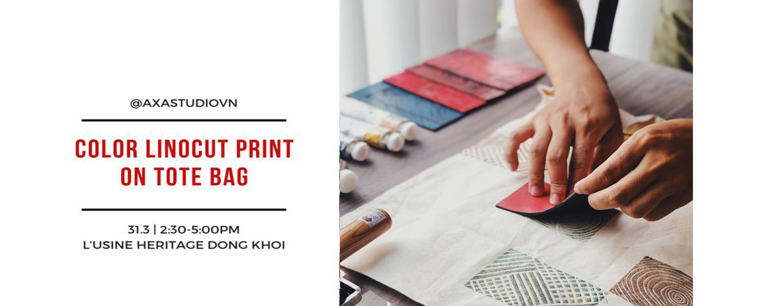 Axa studio cùng với L'Usine trân trọng giới thiệu đến các bạn buổi workshop: "Printmaking / Khắc nổi và in đa màu trên túi tote".