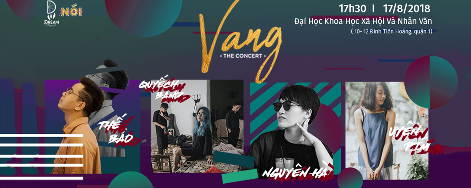 VANG - The Concert là đêm nhạc mang xu hướng indie và underground được thể hiện bằng những phong cách rất riêng bởi những câu lạc bộ của các trường THPT và Đại học tại TP. Hồ Chí Minh và 4 khách mời nổi tiếng.