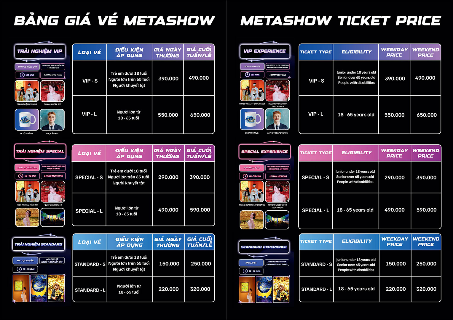 ▪️ VIP-S: 490.000 VNĐ (khách dưới 18 tuổi, trên 65 tuổi và người khuyết tật)
