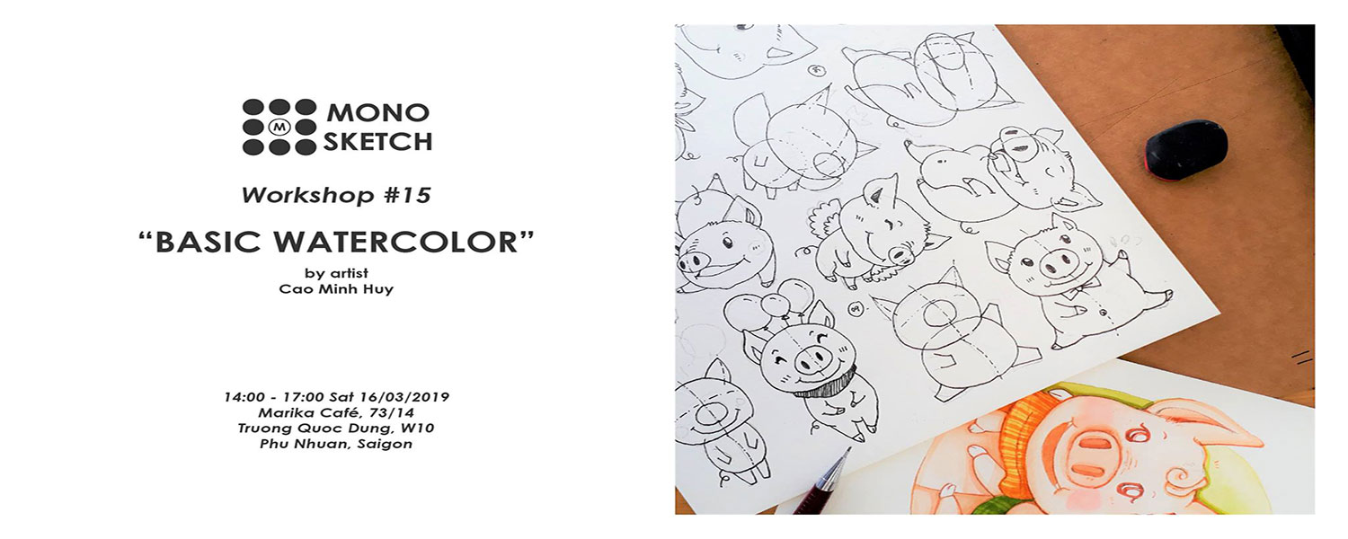 Khởi đầu cho năm mới 2019, Workshop căn bản vẽ màu nước do Monosketch tổ chức đã chính thức quay trở lại với chủ đề "Vẽ Con Heo".