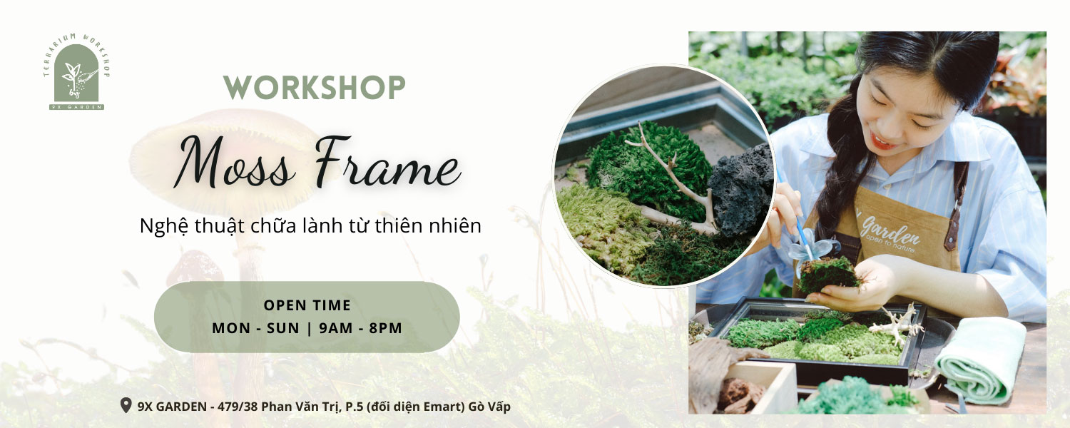 Khi mỗi loài cây, mỗi bông hoa, và từng tấm rêu đều góp phần vào sự cân bằng tuyệt vời của thiên nhiên, chúng ta nhận ra rằng vẻ đẹp tự nhiên không chỉ là nguồn cảm hứng mà còn mang lại sự chữa lành sâu sắc. 9X GARDEN mời bạn đến với Workshop "Nghệ Thuật Chữa Lành Từ Thiên Nhiên", nơi bạn có thể tạo ra những kiệt tác nghệ thuật từ rêu và các vật liệu tự nhiên khác, mang lại không gian sống động và bình yên. Tham gia workshop, bạn sẽ không chỉ học cách sáng tạo mà còn tìm thấy sự bình an trong tâm hồn, hòa mình vào vẻ đẹp thanh khiết của thiên nhiên.