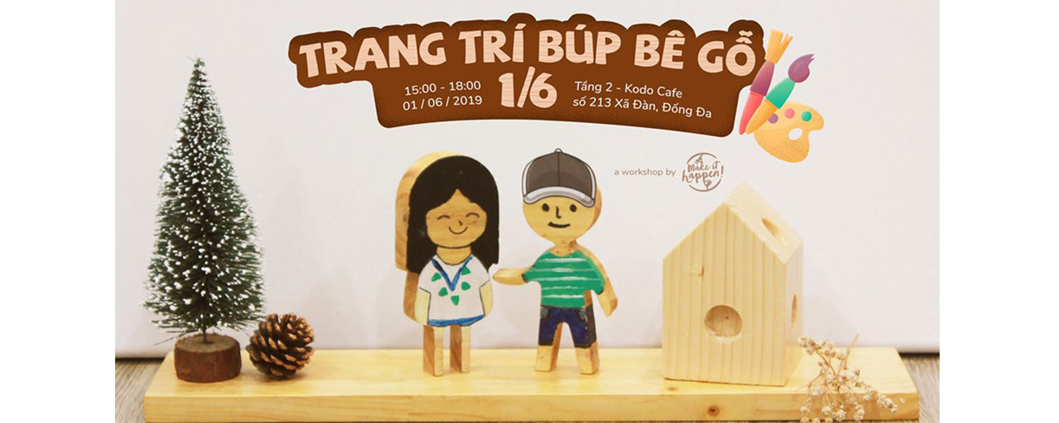 Lần này chúng mình rất vui được chào đón cô giáo Minh Anh và thầy Duy Đức từ Tiệm Củi đến chơi cùng! Chủ đề workshop sẽ là về búp bê gỗ ngộ nghĩnh. Cùng với màu, các phụ kiện và sự sáng tạo, học viên có thể thổi hồn khiến những mô hình gỗ đơn sơ trở nên thật sống động thể hiện những nét cá tính của người vẽ. Từ ĐÁNG YÊU đến ĐÁNG GHÉT rồi ĐÁNG THƯƠNG, những chú búp bê gỗ sẽ được trí tưởng tượng không giới hạn của các bạn biến hình thành các nhân vật với nhiều cảm xúc linh hoạt.
